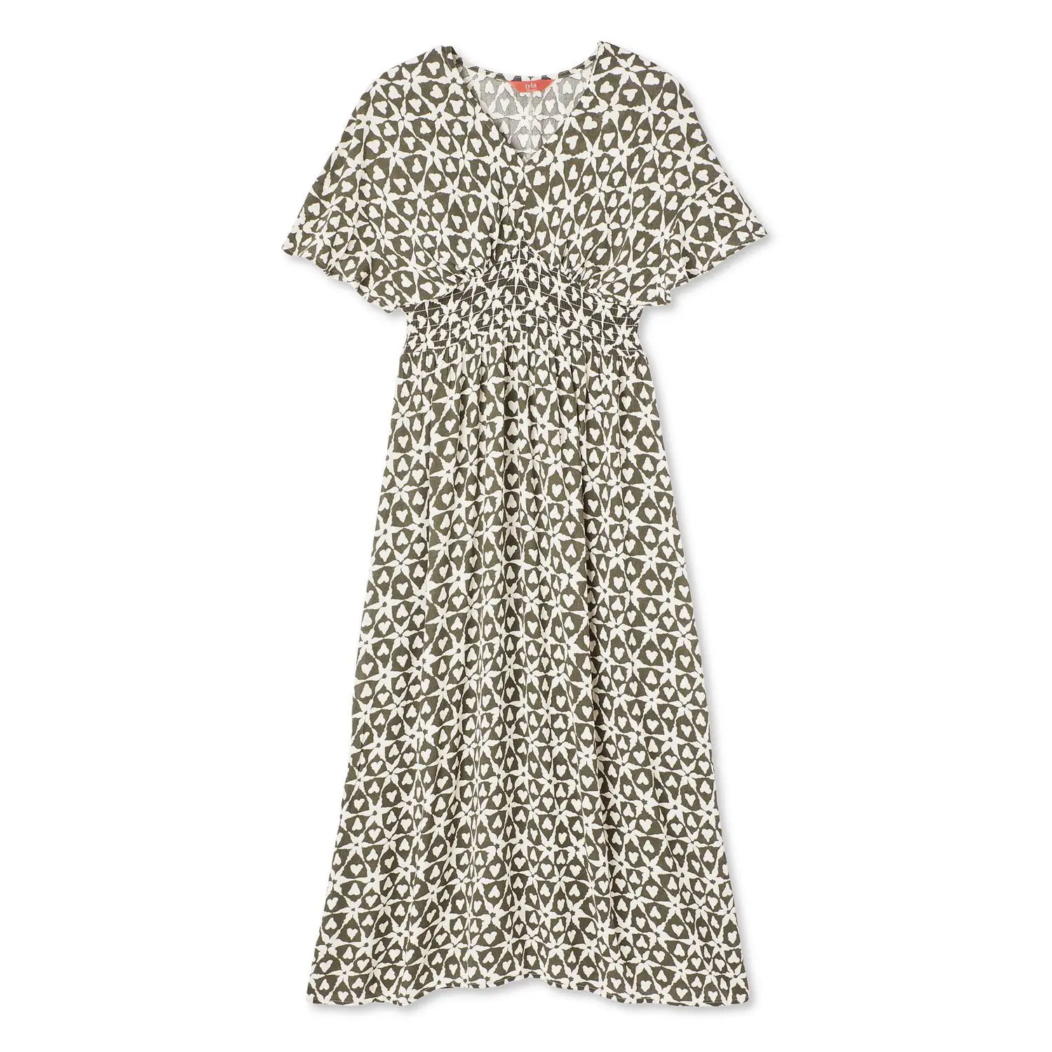 Make a statement at your casual outing or brunch date with Iyla women's maxi dress. Designed with a V-neckline, this dress is perfect for those warm, sunny days. The short dolman sleeves add elegance to your look, while the smocked waistband hugs your silhouette for a flattering look. Featuring an all-over print and a playful ruffled hem, this dress is sure to turn heads. Pair it with strappy sandals and drop earrings for chic style.