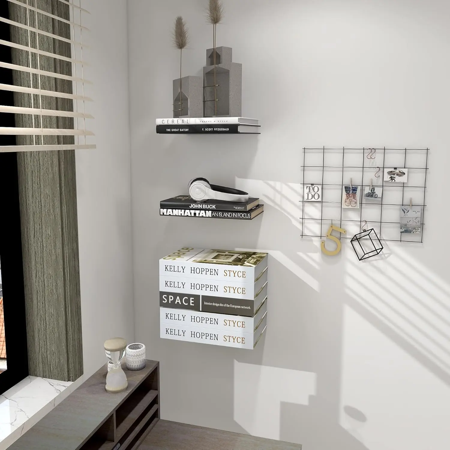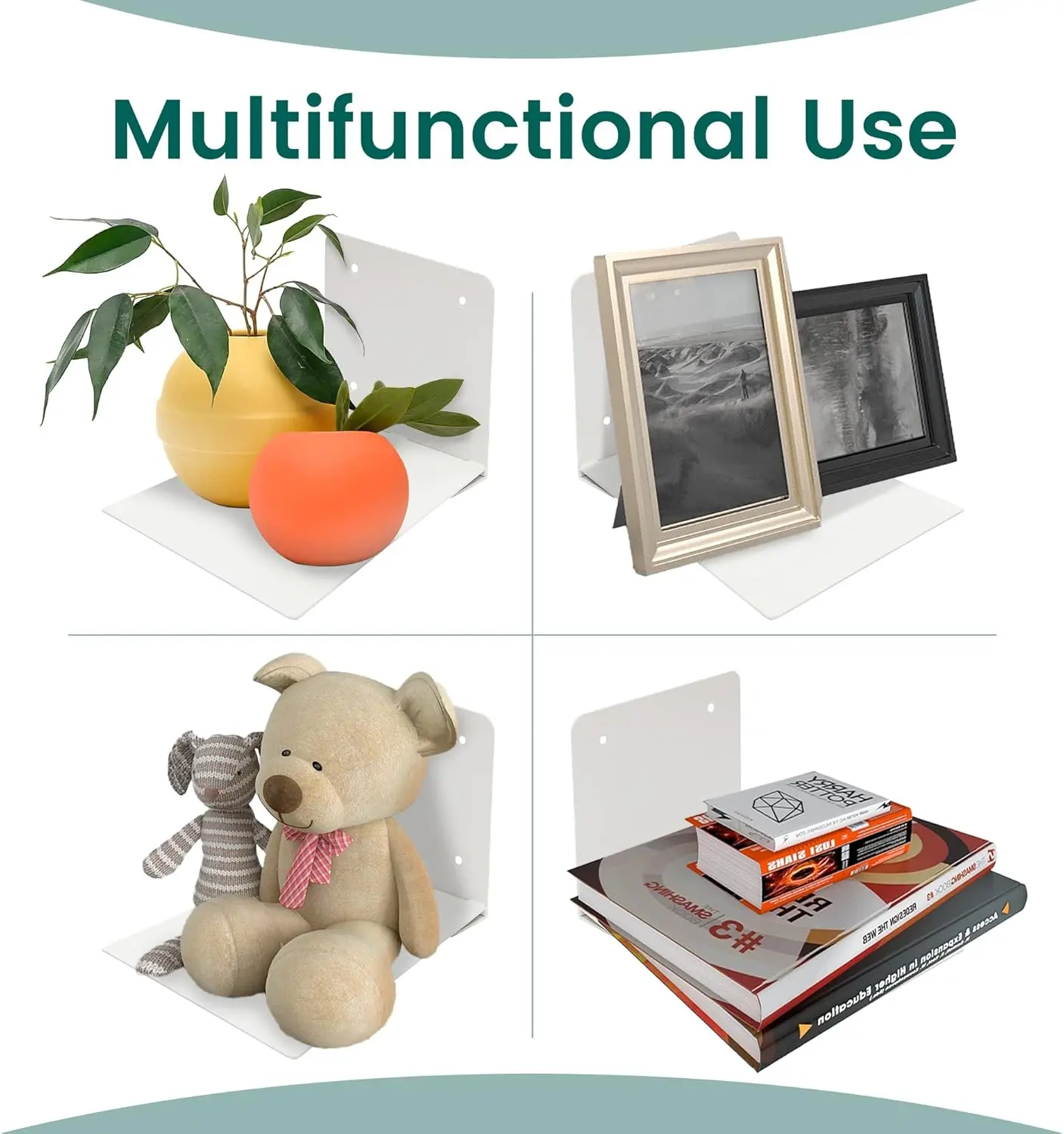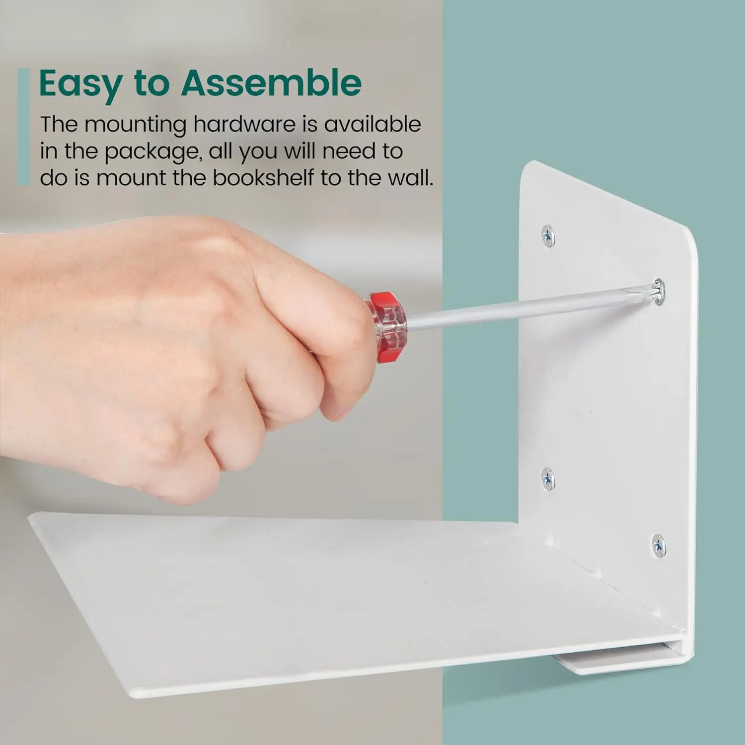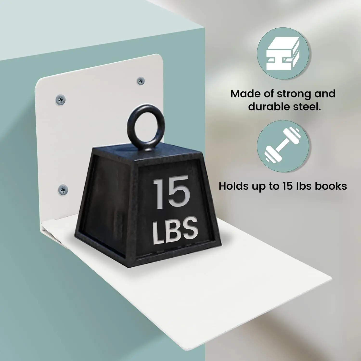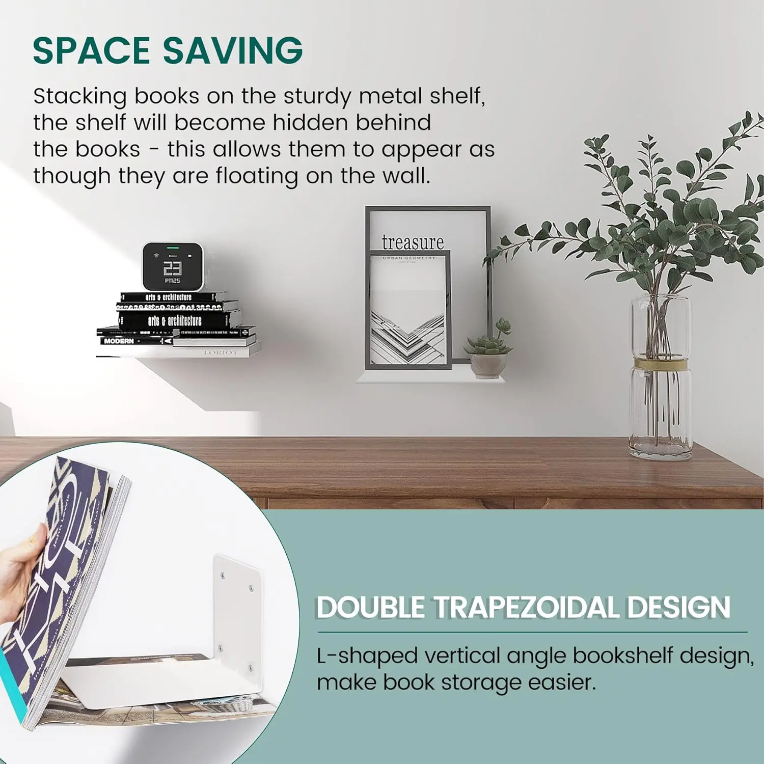 - DURABLE and Extra Large Size: Our metal floating bookshelves are made of strong steel with antirust coating, each floating bookshelf can support up to 22 lbs of books; Size: 6.38 x 6.89 x 4.84 inches, large than our another 4-pack invisible bookshelves