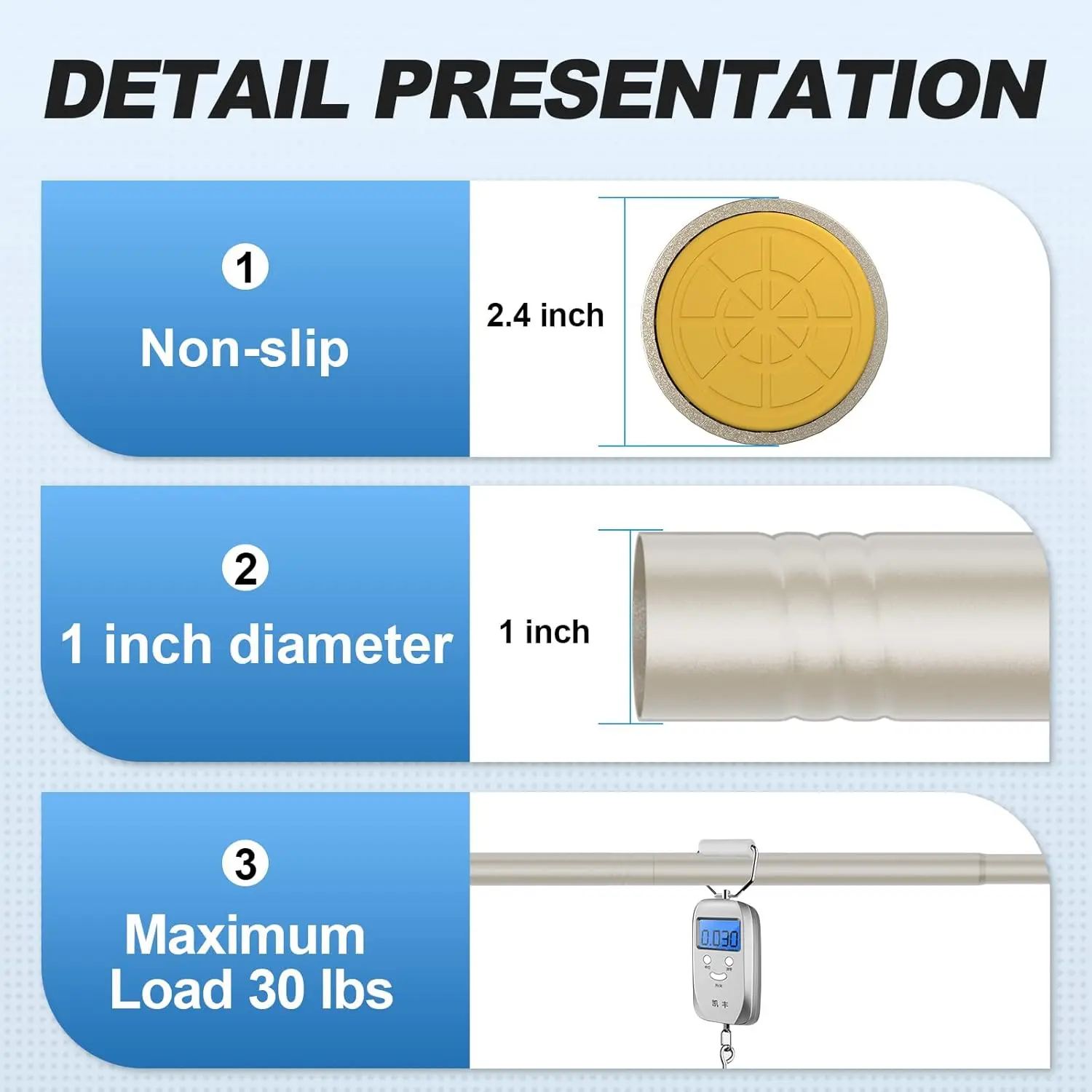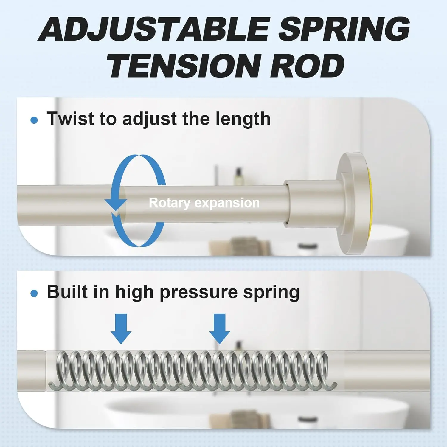 - Sturdy And Durable:The shower rod uses a high pressure spring tension to securely hold the rod in place,and it can easily support up to 30 pounds of weight.
