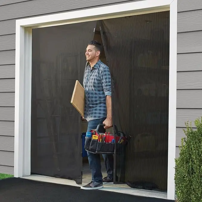 Magic Mesh Garage- Hands Free Magnetic Screen Door, Fits Single Garage Doors- 8 & 9 Foot, Black