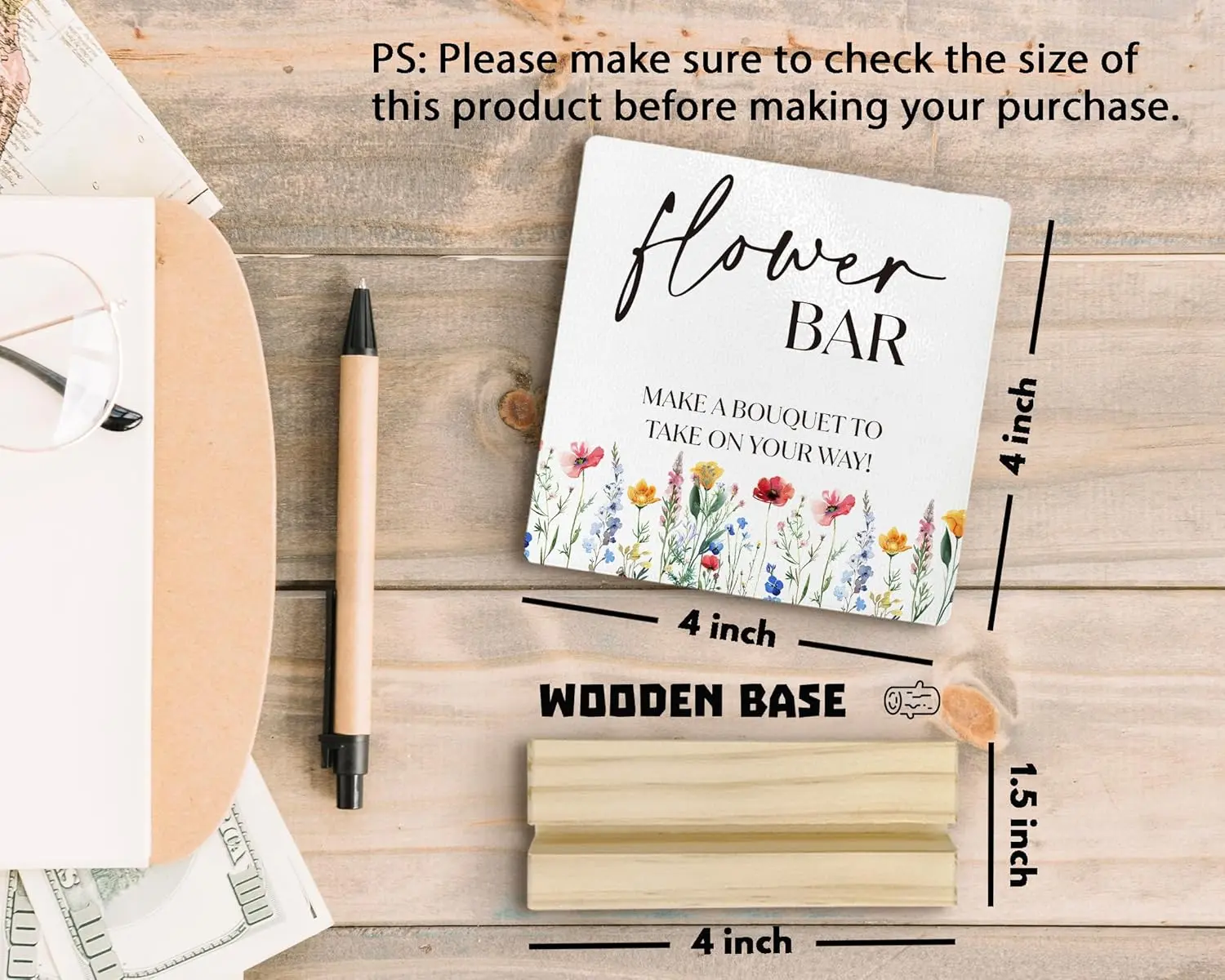 - Perfect Size and Material: The flower bar wooden plaque is made of compressed wood, measuring 4x4 inches, while the base is made of wood with dimensions of 4x0.8 inches. Please make sure to check the size of this product before making your purchase.