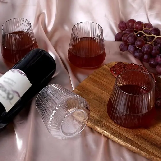 40 Pack Plastic Ribbed Wine Glasses 14oz Origami Style Disposable Wine Cups