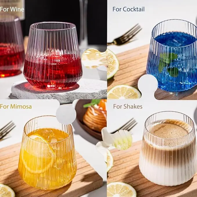 - 【Stripe Feel Design】:The shape of the plastic wine glasses is designed with a unique origami style, brings a European retro flavor, which is very suitable for formal dinners or leisure and entertainment. Gorgeous appearance wine glasses adds color to your party.