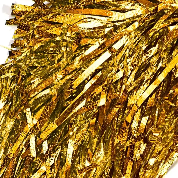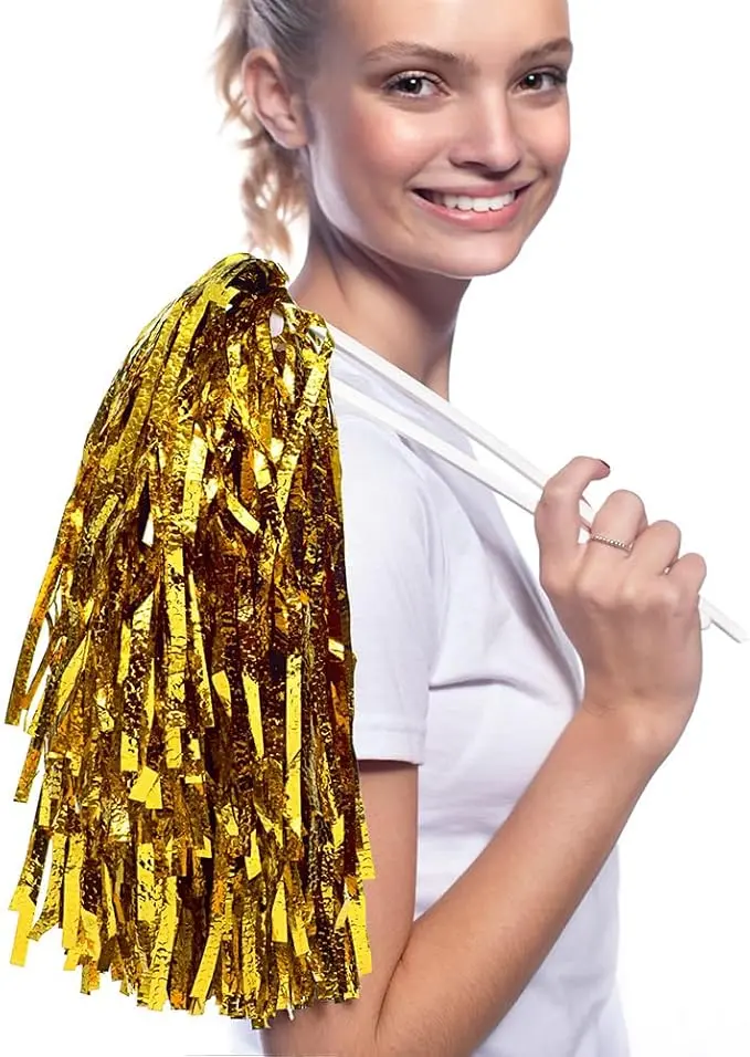 - SENSATIONAL Pom Poms: This Gold Metallic Textured Pom Pom Set provides lots of "razzle dazzle" to help cheer on individuals and/or teams throughout the year. The shimmer and shine of the metallic textured material will bring out the kid in everyone who uses them