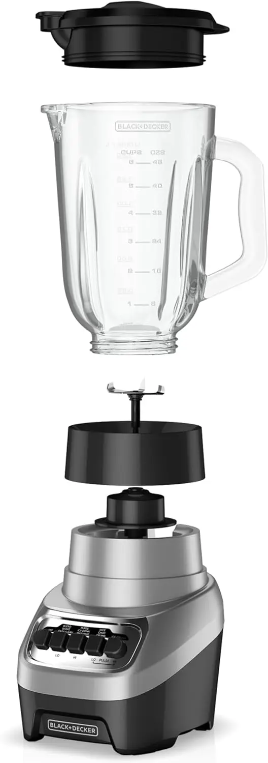 BLACK+DECKER PowerCrush Multi-Function Blender with 6-Cup Glass Jar, 4 Speed Settings, Silver