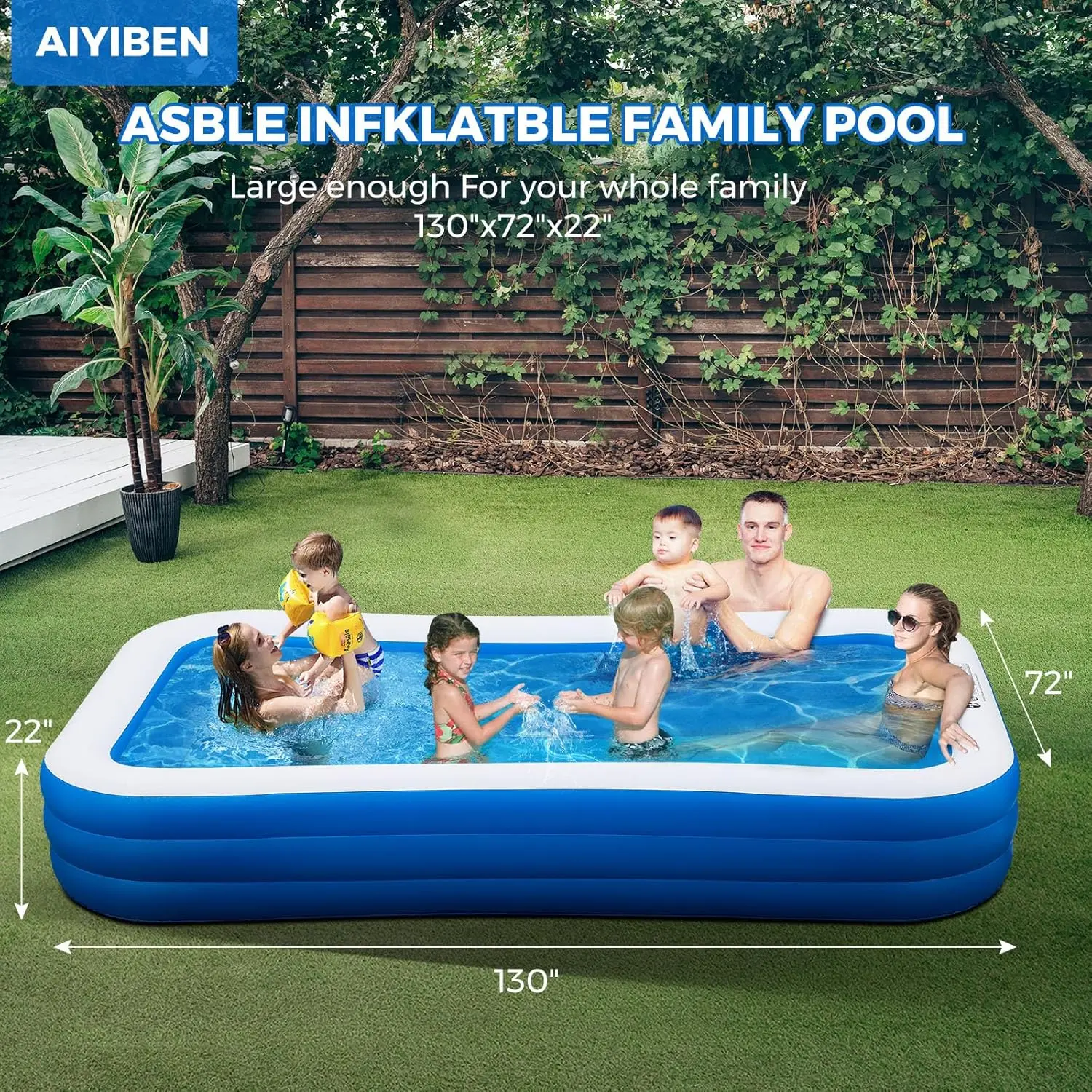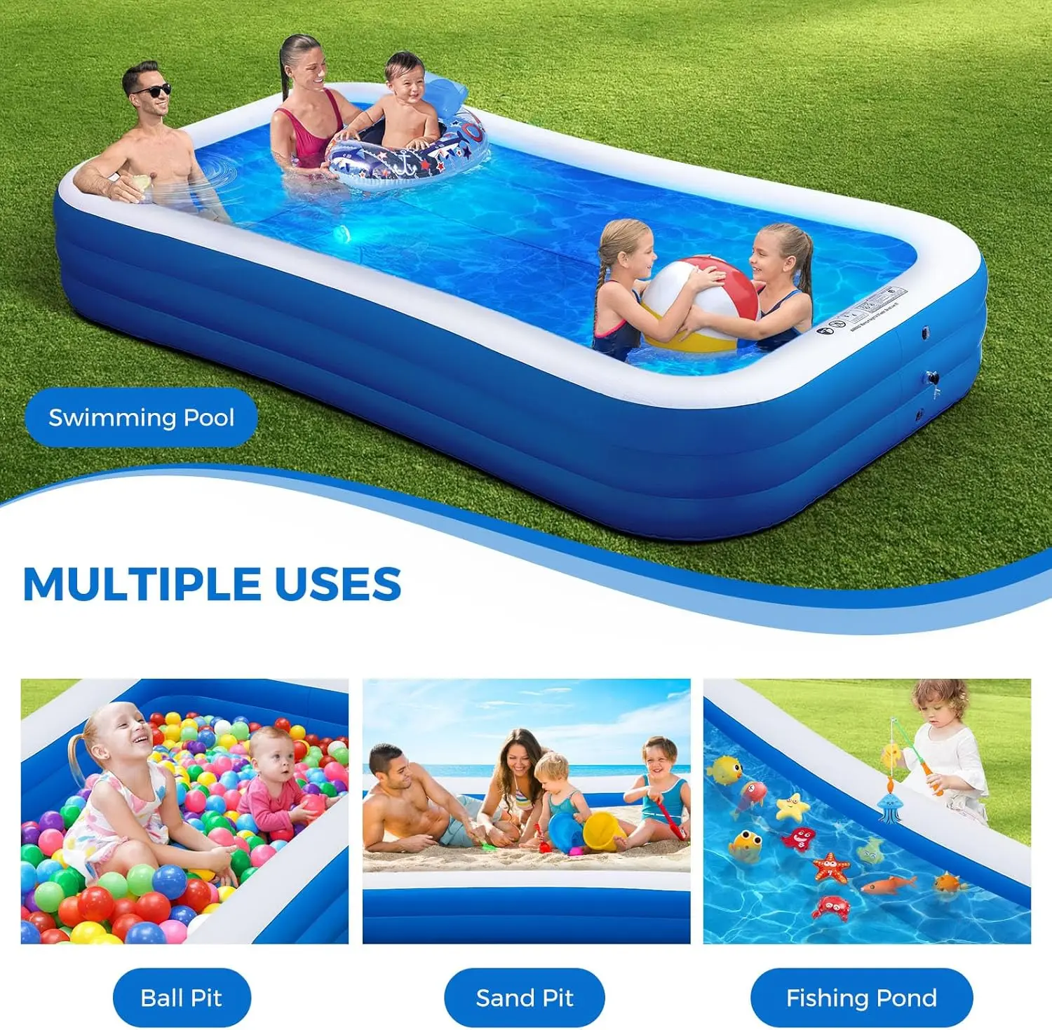 Inflatable Swimming Pool with Pool Lights, 130" x 72" x 22" Full-Sized Large Inflatable Family Pool,