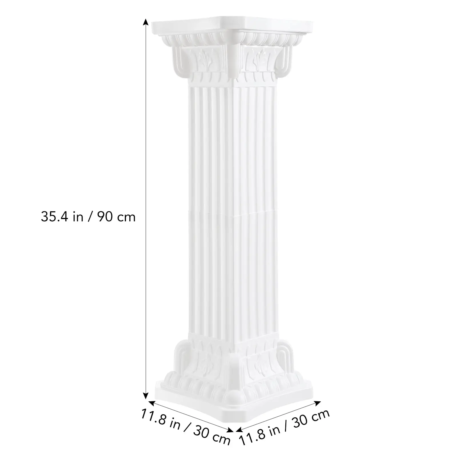The item is a roman pillar decor. Made of premium material with excellent texture, reliable in quality. The elegant vintage exterior design greatly enhances the visual appeal. Increase the sense of ceremony and decoration for wedding parties, can also be used to display plants and flowers, collectibles, etc. Features -Color: White -Material: Plastic - Size: 90.00X30.00X30.00cm/35.37X11.79X11.79in -Premium material: Made of plastic material with excellent texture, it can be reused and is reliable in quality. -Stable placement: The large area of the bottom the ground, will not slide, and is light and easy to move. -Vintage appearance: The elegant vintage exterior design greatly enhances the visual appeal. -Wedding decoration column: As a wedding flower holder Roman column increases the sense of ceremony and decoration. -Wide application: It can also be used to display plants and flowers, collectibles, various ornaments, etc.