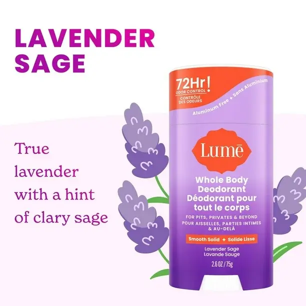 - LAVENDER SAGE. Lume’s original signature scent combines soothing lavender with a hint of clary sage. It’s a classic! Our Smooth Solid glides on smoothly anywhere you want to control odor