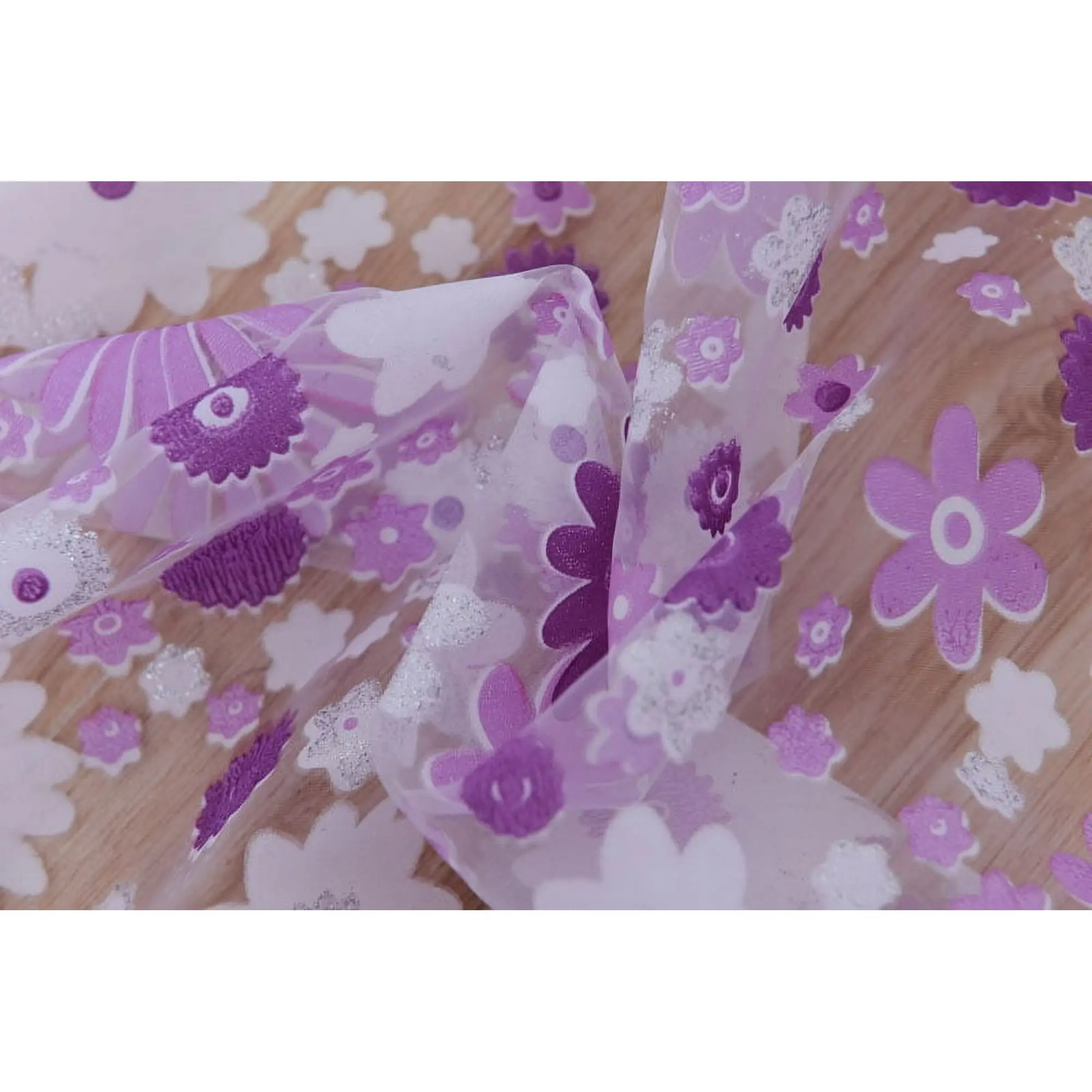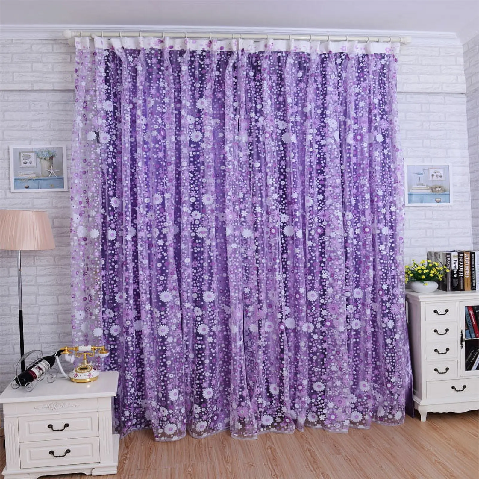 Beppter Polyester Sheer Curtains Purple Small Florals, 1Pc Organza Curtain (200Cm X 100Cm) - 1 Curtain Panel