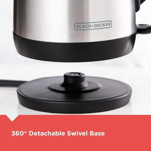 Don’t waste time waiting for water to boil! The BLACK+DECKER 1.7L Stainless Steel Electric Cordless Kettle features Rapid Boil Tech to boil water more than 2 times faster than a stovetop and lets you easily fill 1-3 cups for a quick boil. The 360 detachable swivel base and cord free pouring allow for easy handling from any angle and the kettle is right or left hand friendly. When finished, the auto shutoff feature allows the kettle to shut off for added security or when water is low for boil dry protection. Plus, the durable stainless steel exterior has a sleek, modern look. This is one appliance you won’t mind keeping on your countertop! Rapid Boil Tech - Boils more than 2 times faster than a stovetop*. Auto Shutoff & Boil Dry Protection - Kettle shuts off when water is low for added peace of mind.
