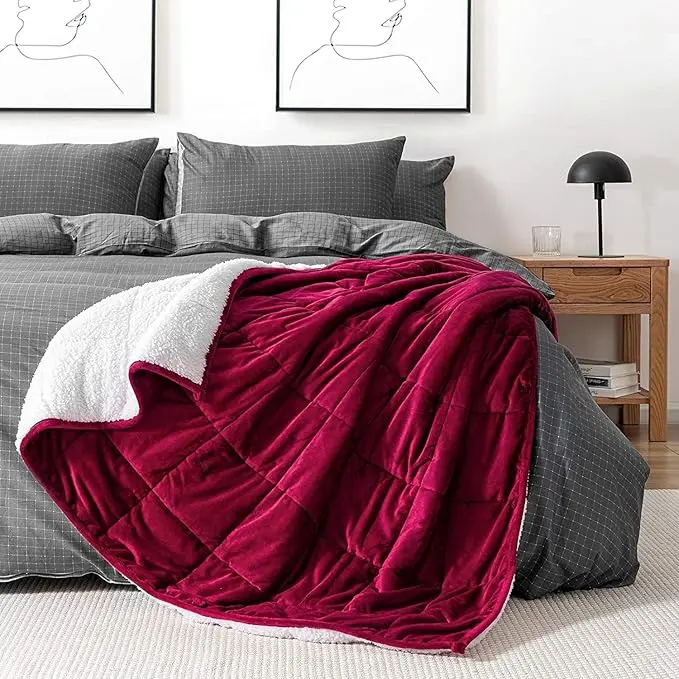 HBlife Sherpa Fleece Weighted Blanket for Adults, Oeko-Tex Certified 15 lbs Thick Fuzzy Bed Blanket, Heavy Reversible Soft Fleece Blanket with Premium Glass Beads 60x80 Inches, Burgundy
