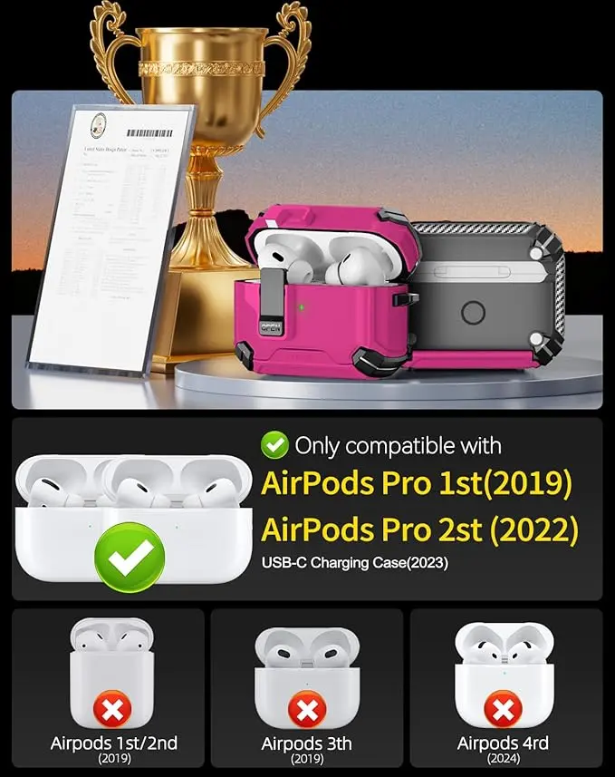 【Compatible Device 】 Automatic Snap Switch Secure Case Simple installation and it fits the Compatible with Apple AirPods Pro 1st Generation (2019),AirPods Pro 2nd(2021),AirPods Pro USB-C Charging Case(2023). ( Not Compatible Airpods 1/2/3)
