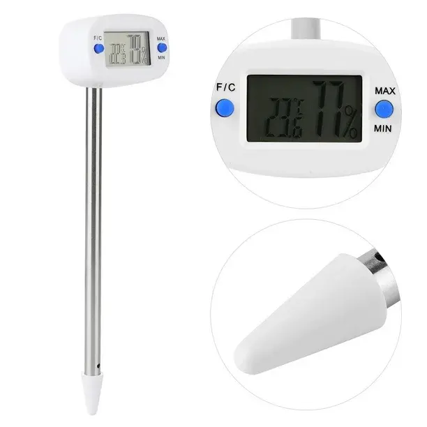 Portable Digital Soil Thermometer and Moisture Monitor with Stainless Steel Probe & LCD Display - High Accuracy Indoor/Outdoor Plant Care Tool, ABS Construction, 0-50°C Range, Includes CR2032