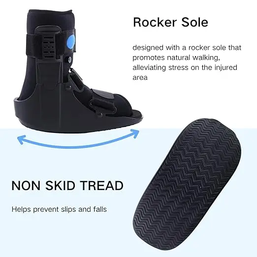 Indications: Walking boot is ideal for stress fractures of the foot and ankle, a sprained ankle, broken foot, soft tissue injuries, achilles tendon rupture, post-operative stabilization or injuries where you are required to immobilize your foot.