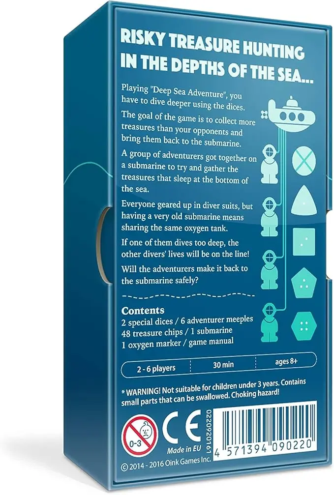 The Oink Games OIN09022 Deep Sea Adventure board game is suitable for ages 8 and up, 30 minutes playing time, 2-6 players