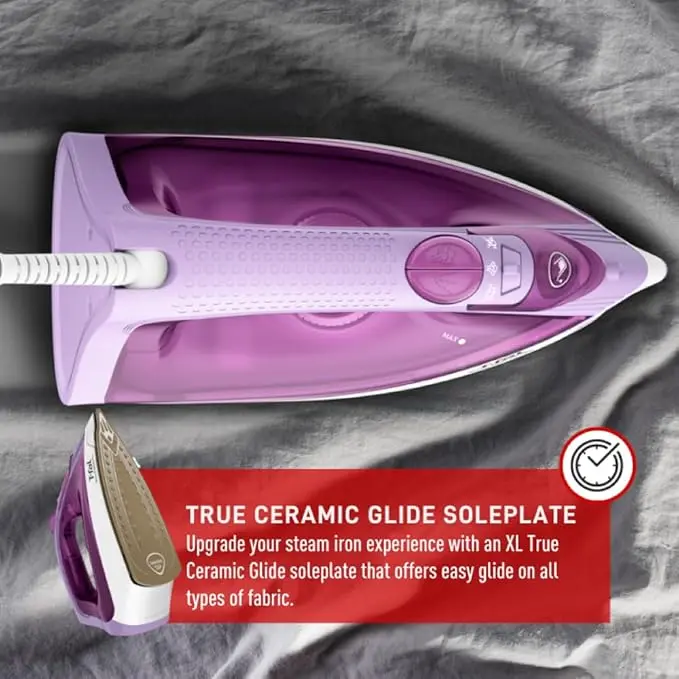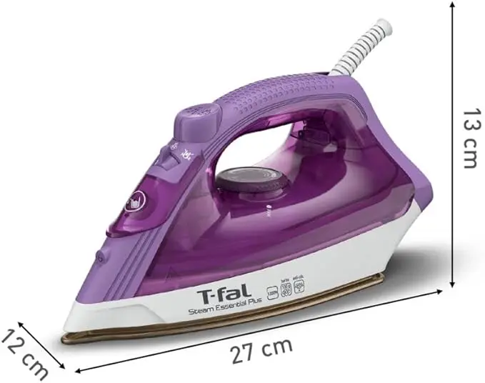 T-fal Steam Essential Plus Ceramic Soleplate Steam Iron for Clothes Eco-Friendly with Steam Trigger 1200 Watts Ironing, Programmable Steaming, Purple