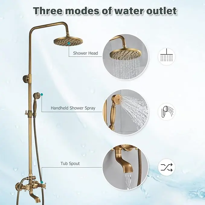 【High Quality】:NeierThodore Shower Faucet Set is made of solid brass;Antique brass finish to resist corrosion and tarnishing.