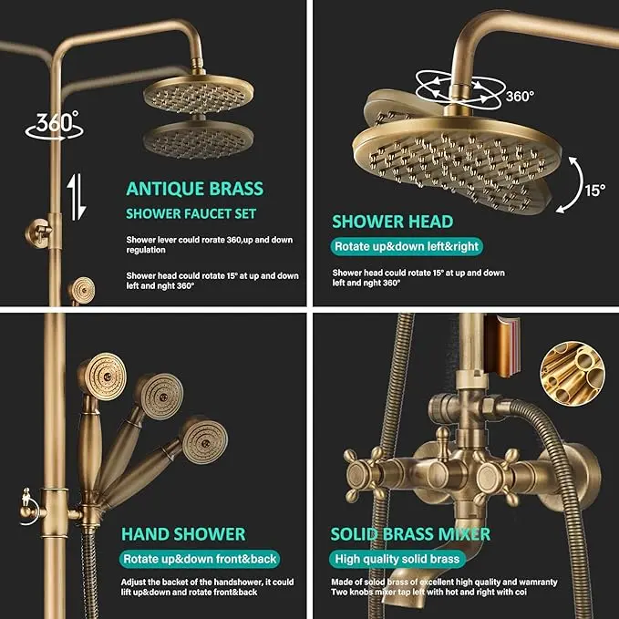 NeierThodore Antique 8-Inch Brass Faucet Shower System
