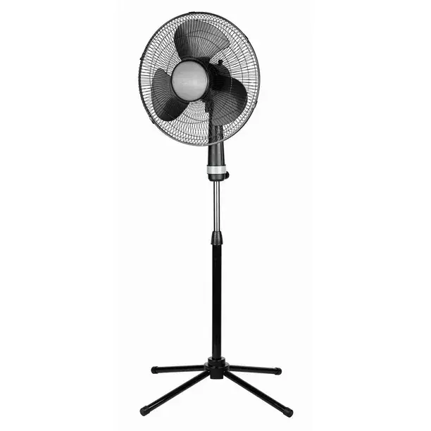 MAINSTAYS 16” Stand Fan is the perfect solution to move air for keeping your personal and work environment cool. With its sleek design, this stand fan is equipped with a powerful motor and three blades that move air at a high velocity. This stand fan features adjustable height, a tilting fan head, option for oscillation and three speed settings.