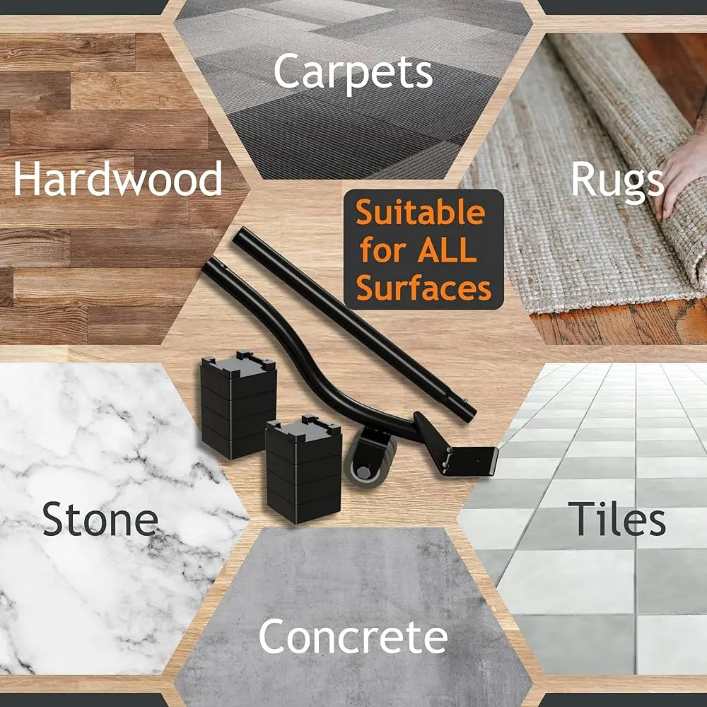 - THE PERFECT FURNITURE LIFTER KIT: Forget about having to ask friends or neighbors for help. Our heavy-duty furniture lifter jack set makes inserting mover sliders, dollies, rollers, risers, or anti-slip pads under your furniture and appliances easy