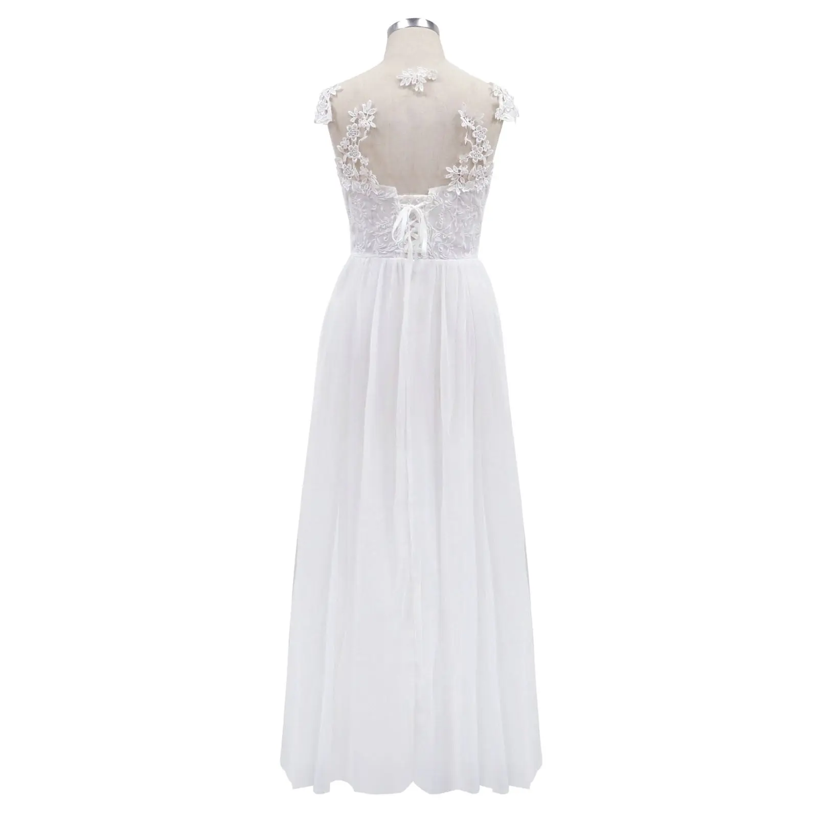 Bramtres Maxi Dresses,Sundresses for Women 2024,Elegant Wedding Dress Lace V-Neck Evening Dress Bridal Gown Dress Lace Chiffon Dress Split Wedding Dress,Long Dresses,Beach Dress,White Dress,XL
