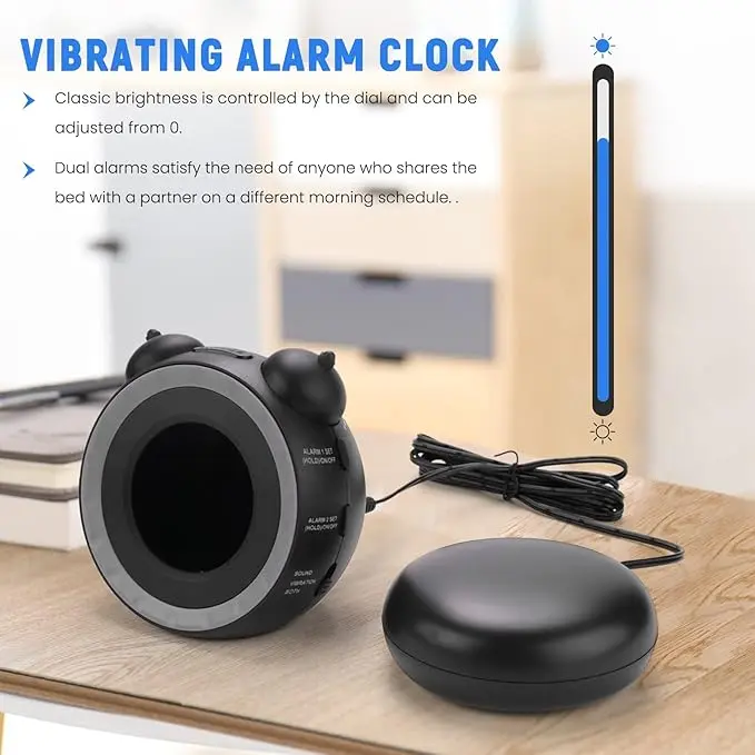 Loud Dual Alarm Clock with Bed Shaker, Vibrating Alarm Clock for Heavy Sleepers or Hearing Impaired, USB Charging Port