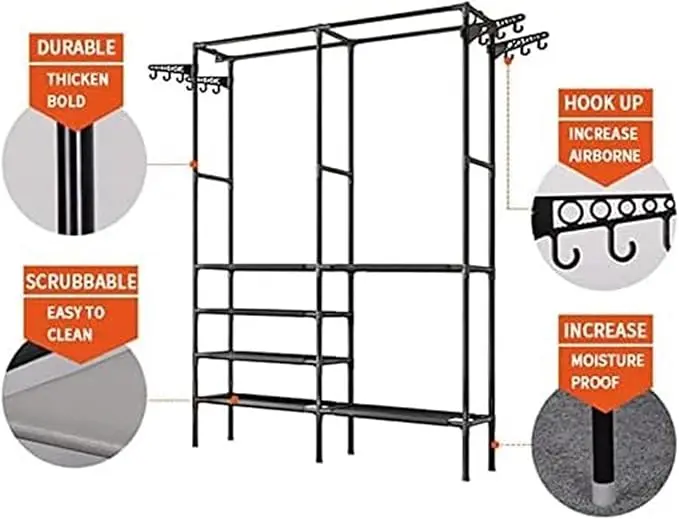 - SMALL SPACE, BIG ORGANIZATION: Not limited by traditional hanging points, more storage space for dresses, hats, and shelves. The base is evenly stressed and has a stable center of gravity, so you never have to worry about hanging too many clothes again.
