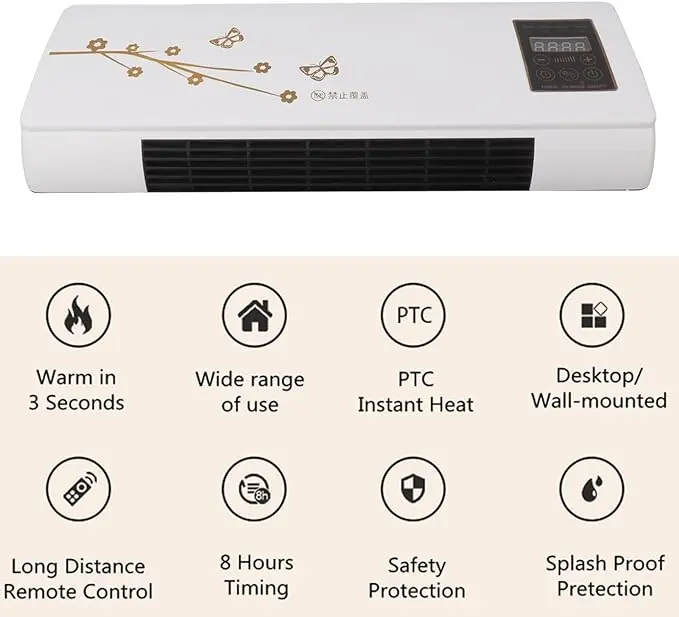 Portable Air Conditioner, Smart Household Wall Mount Portable Heater with Digital Display and Remote Control