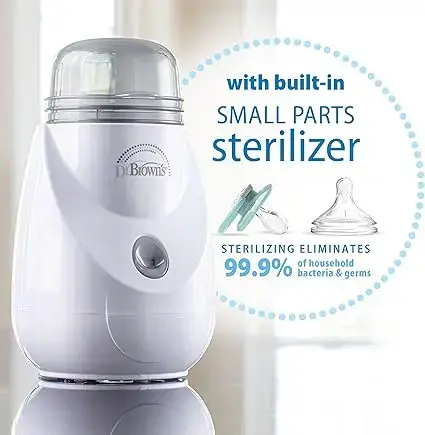- FORMULA AND BREAST MILK WARMER. The 2-in-1 baby bottle warmer and sterilizer uses gentle steam heat to quickly and evenly warm contents with the press of a button. Fits all Dr. Brown’s baby bottles and most other bottle brands.