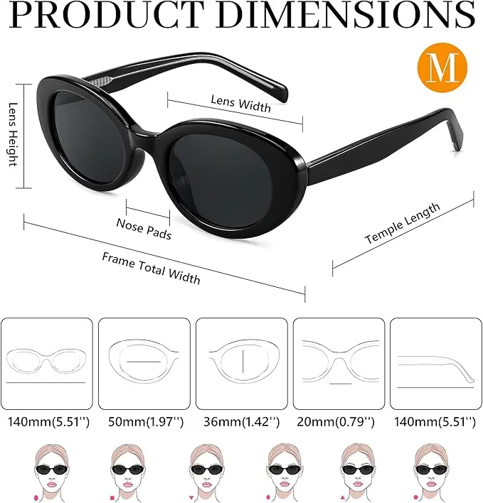 - [Quality Materials] These vintage oval sunglasses are made of premium plastic, reinforced metal hinges and skin friendly nose pads for a longtime comfortable wear.