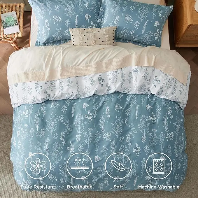 This reversible floral comforter set features elegant plant patterns, perfect for refreshing bedroom decor. Its premium down-alternative filling ensures year-round comfort and warmth, making it an ideal gift. Easy to care for, it’s machine washable and OEKO-TEX certified for safety. The set includes a comforter and two pillow shams for a cozy upgrade.