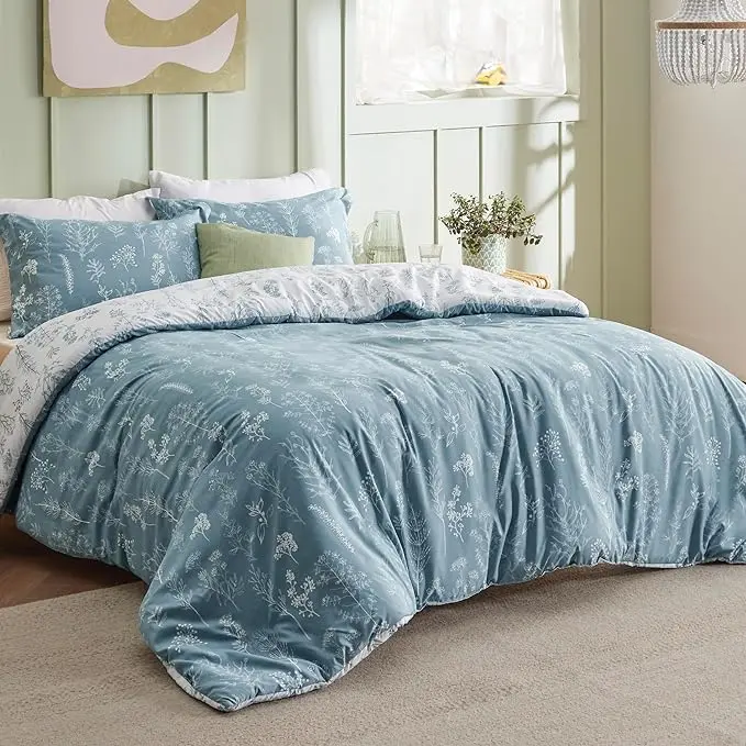 Bedsure Duvet Cover King Size - Reversible Floral Set with Zipper Closure, Mineral Blue Comforter Cover, 3 Pieces, 1 Duvet Cover 104"x90" and 2 Pillow Shams 20"x36"