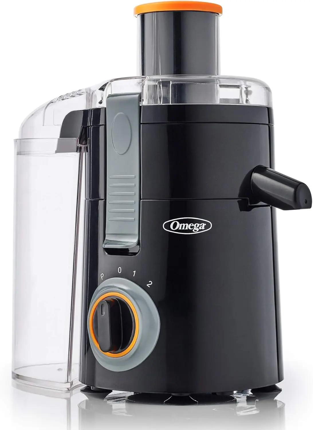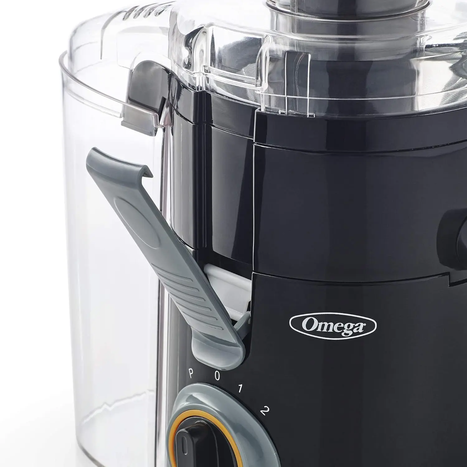 Omega Juicer Large Chute High Speed Centrifugal Extractor For Fruits and Vegetables, Features 3 Speeds Compact Design Large Pulp Container, 250-Watts, Black