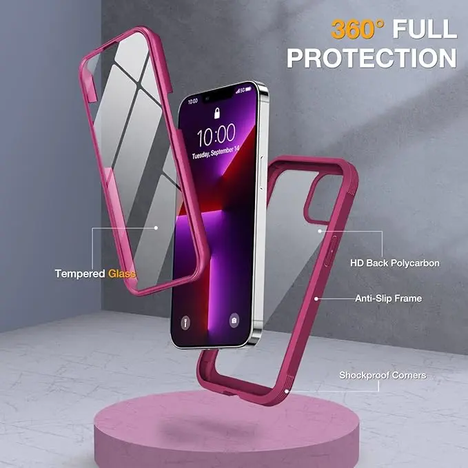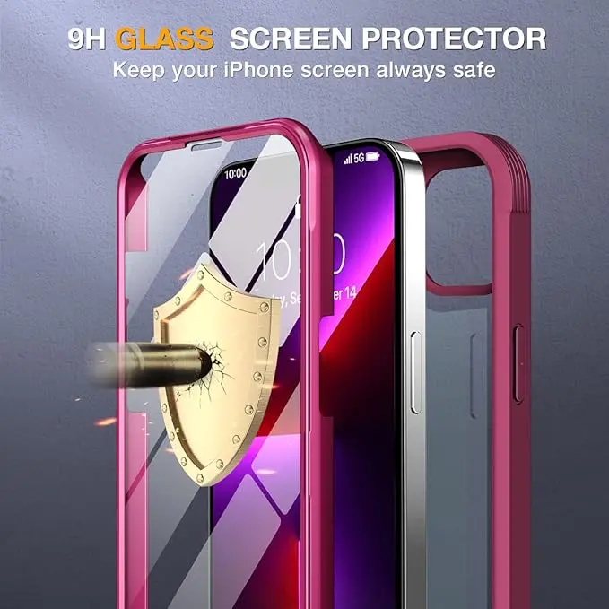 - [360° Full-Body Rugged Protection] Full-body protective case for iPhone 13 pro max. It is tested to survive drops and made of flexible TPU materials. Its Tri-layer structure absorbs and deflects impact that blocks dirt and dust. Raised lips around the camera and the screen are added against untoward scratches.
