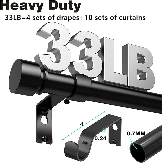 - VERSATILE APPLICATION: Designed to accommodate both lightweight and heavy-duty curtains, this curtain rod is ideal for various curtain styles including grommet, back tab, rod pocket, and tab top. It's perfect for enhancing the ambiance of your living room, bedroom, sliding doors, nursery, cafe, and beyond.