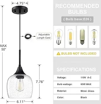 4.EASY INSTALLATION: Hard wired.Includes all mounting hardware for quick and easy installation.Comes with 50" adjustable cord ,these kitchen hanging light fixtures can be applied to the sloped ceiling for your space needs.