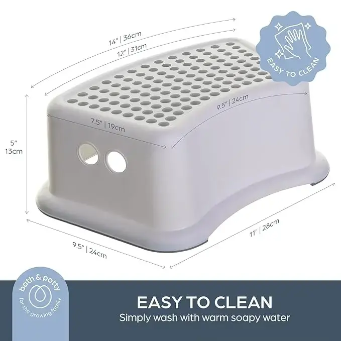๐๐ญ๐ฎ๐ซ๐๐ฒ & ๐๐ข๐ ๐ก๐ญ๐ฐ๐๐ข๐ ๐ก๐ญ: Designed with durable and lightweight plastic which holds up to 175 lb. yet lightweight enough for your toddler to use independently. Toddler stool measures 14.3" width/36.4cm, 9.6"/24.5cm depth, and 5.6"/14.3cm height.