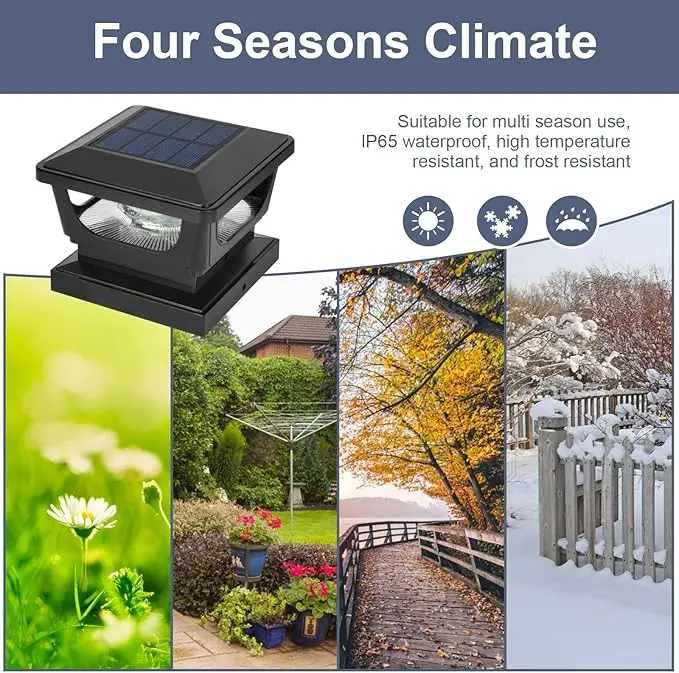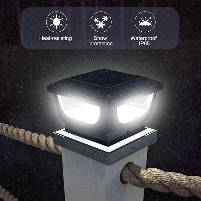 - 【IP65 Waterproof】Outdoor solar post lights are made of high quality PC and ABS material, no rust. Our solar post cap lights can work normally under all kinds of weather with the waterproof rating of IP65 and weatherproof, no worries about rain, snow, frost, or sleet. You can rest assure to use, in any outdoor environments.