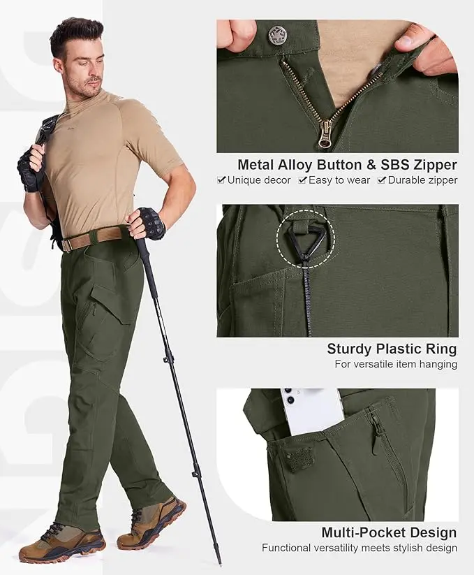 Tactical Pants for Men with 9 Pockets Cotton Cargo Work Military Trousers Stretch Hiking Combat Rip-Stop Pants (XXL)