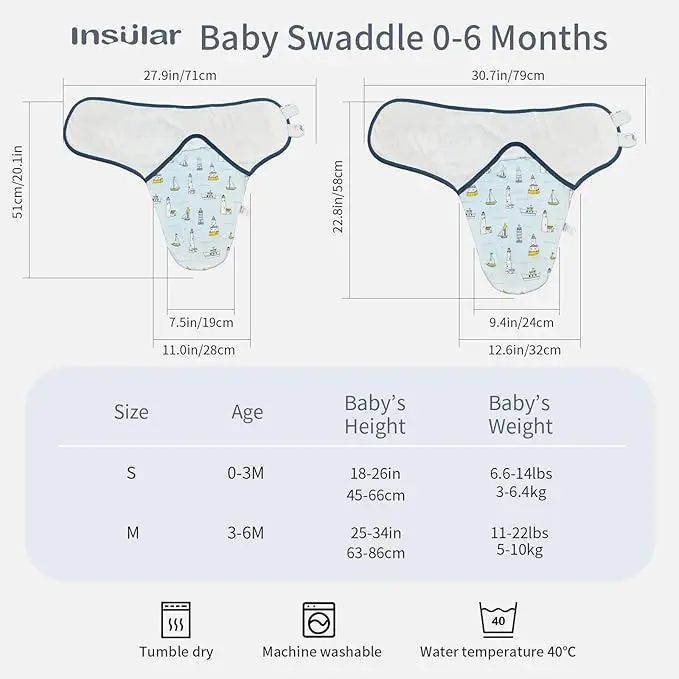 - SAFE&ADJUSTABLE: All INSULAR swaddling blankets are made with no zippers, snaps or buttons that would be extra safe and soft for your little angle. The adjustable sleep sacks have soft fabric wings that fasten securely with hook and loop attachments to create a perfect fit.