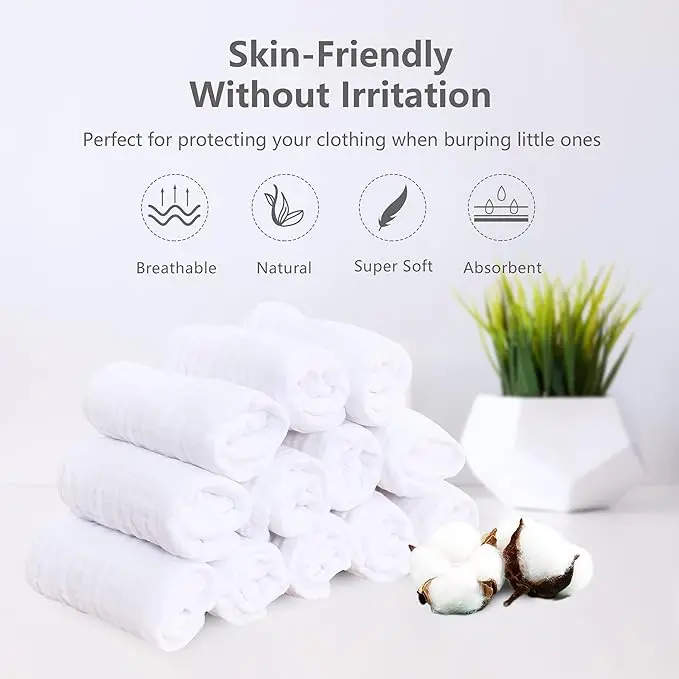 - PACKAGE CONTENT - 12 pieces muslin burp cloths, 20 x 10 inches. They are also lightweight and breathable, making them ideal for use in any season.