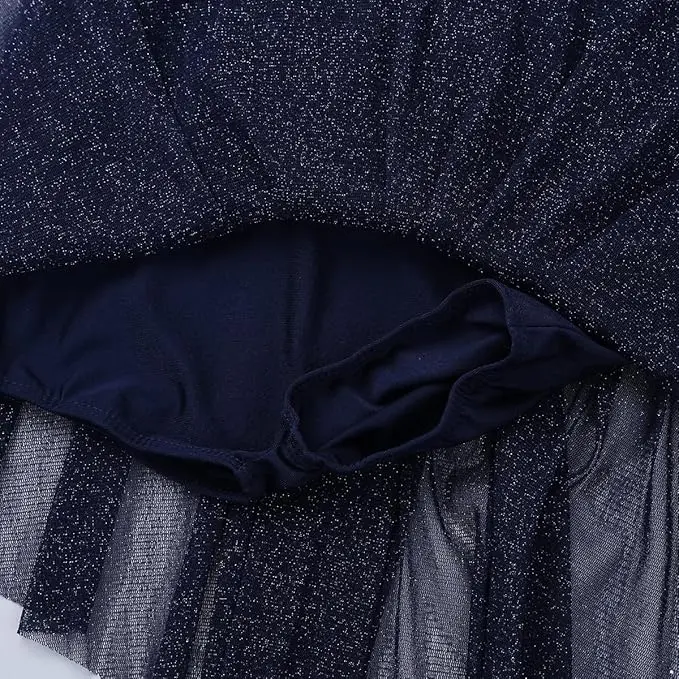 iEFiEL Girls Dress Sparkle Navy Blue (US 12, UK 11-12Y, EU 146-152cm)
