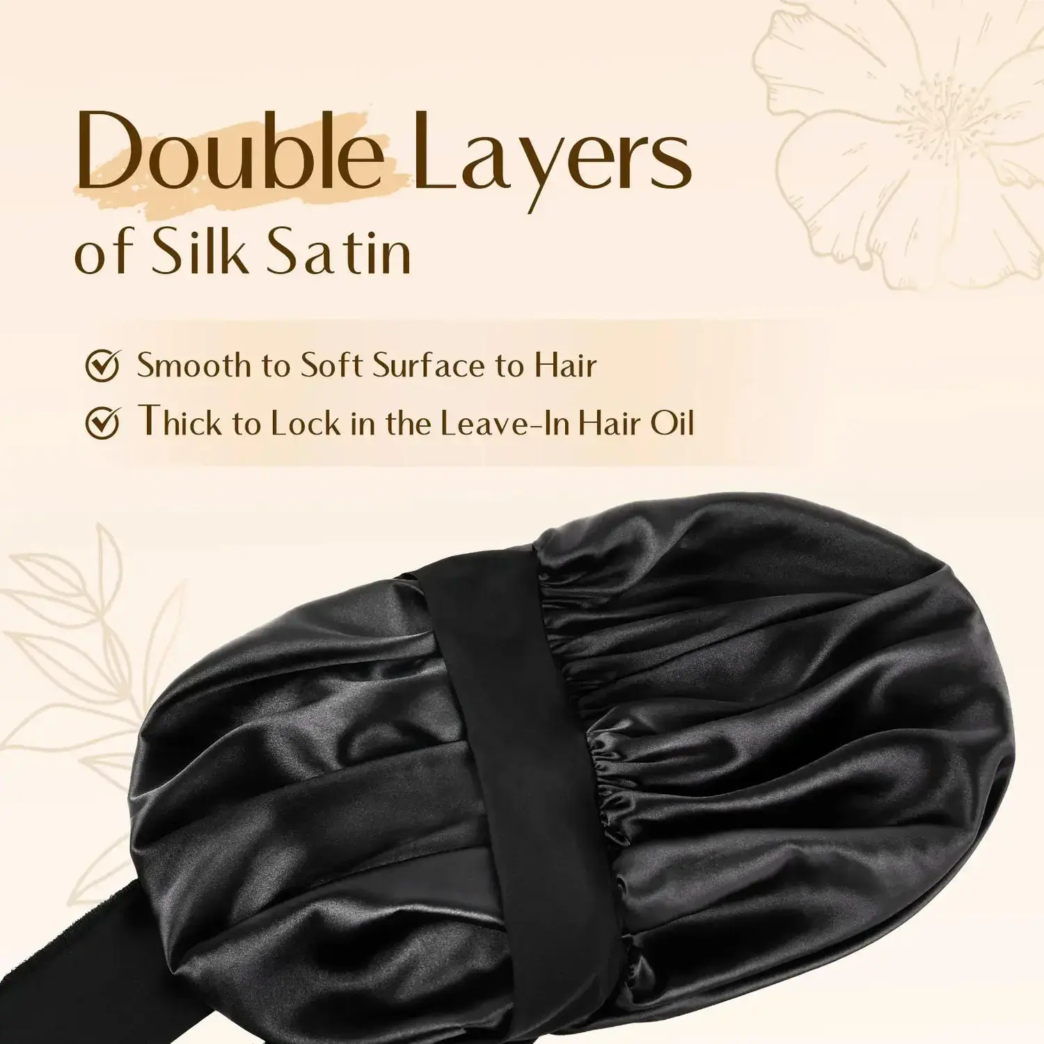 Yanibest Tie Band Double Layer Butter Satin Bonnet | Black Black