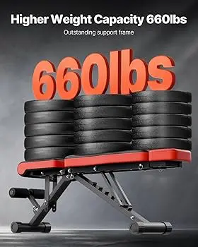 - 660lbs Heavy Duty Weight Capacity: The weight bench frame is made from 50x25xT1.5mm commercial-grade steel, with a weight capacity of 660lbs. It offers a sturdy structure, better stability, and support performance, making it ideal for entry-level users