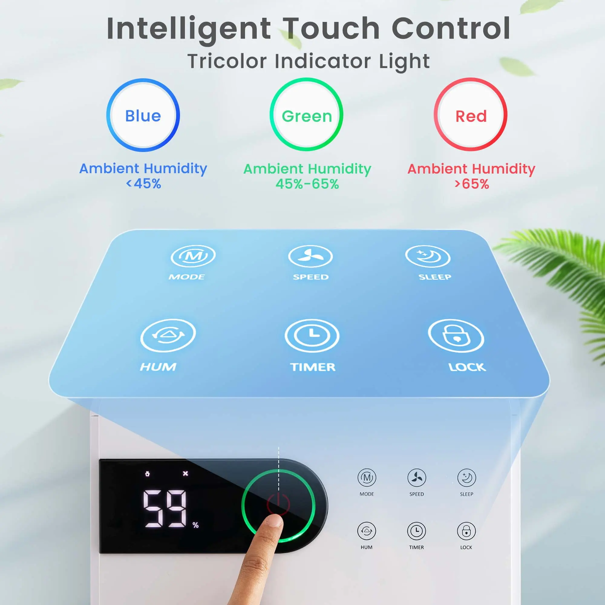 With a 32 pints/day dehumidify capacity (@ 95℉, 90% RH), this humidifier helps you to solve various problems caused by high humidity, such as wet clothes, water condensation, damaged furniture, musty odors, wet wall, respiratory problem and more. It provides you with 3 modes (auto, continuous drying, sleep) and 2 speeds (high, low) and 30%-80% adjustable humidity setting. This dehumidifier features a 3-color indicator light which changes the color according to the ambient humidity. Thanks to the whisper operation, you can enjoy a peaceful sleeping environment. And the 24-hour timer brings more convenience to your daily life.