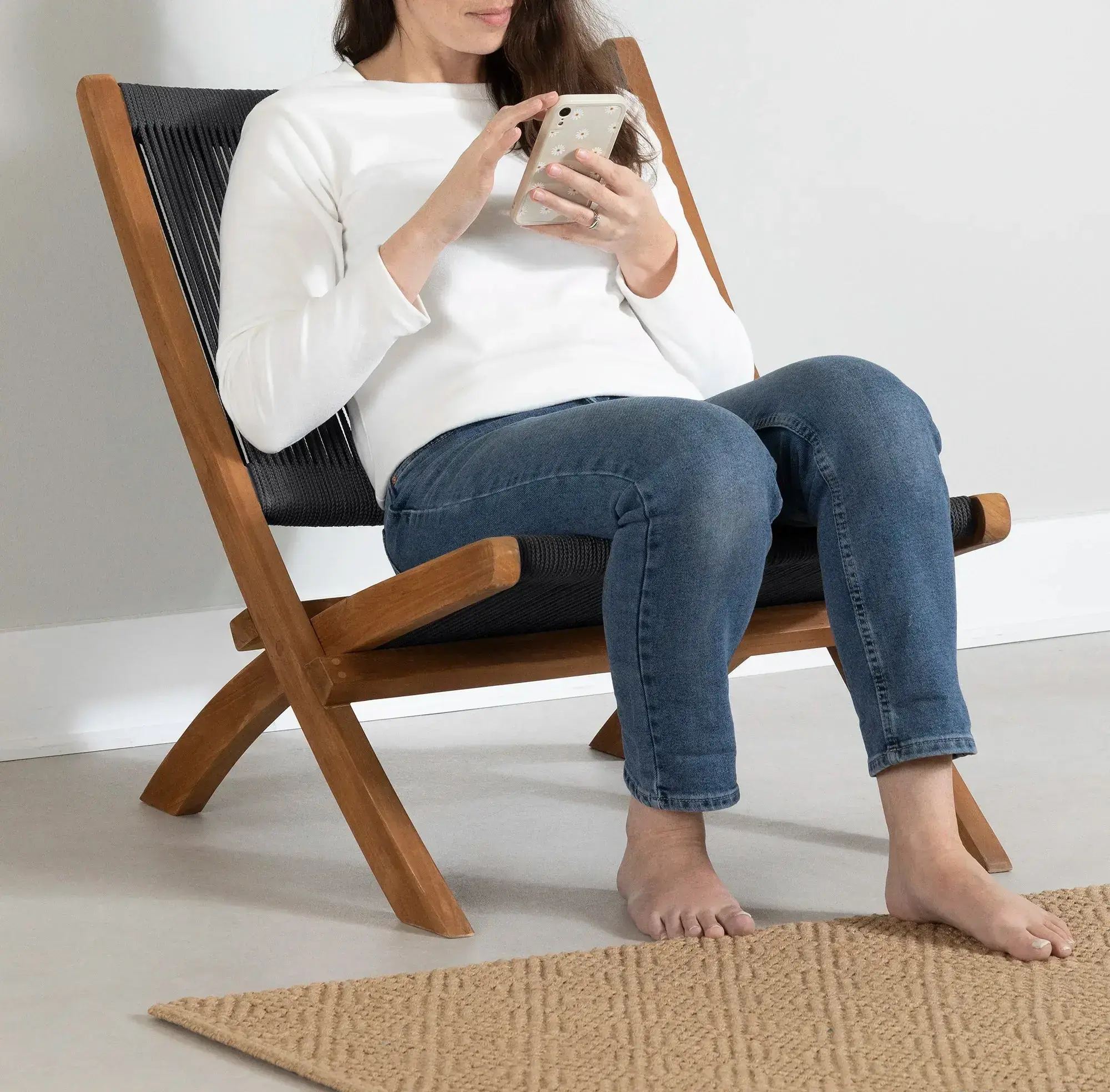 • STRONG STRUCTURE: With a teak wood frame, a material known for its durability, and a polyester rope seat, this chair could not be stronger. It can support a weight of up to 250 lb.