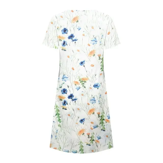 DPTALR Women's Summer Bohemian Print Short Sleeve Beach Dress (XL)