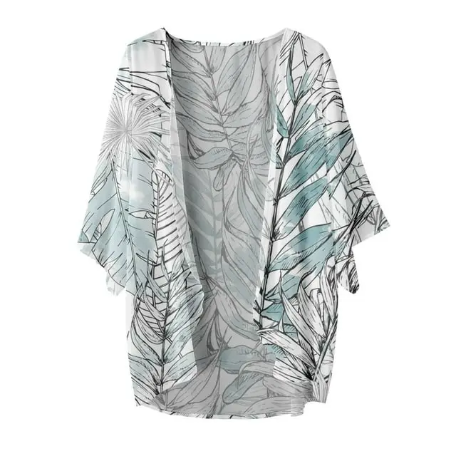 Virmaxy Womens Summer Open Front Kimono Tops Floral Graphic Cardigan Summer Lightweight Puff Sleeve Chiffon Cover Up Chic Loose Fit Fashion Resort Wear Light Blue M