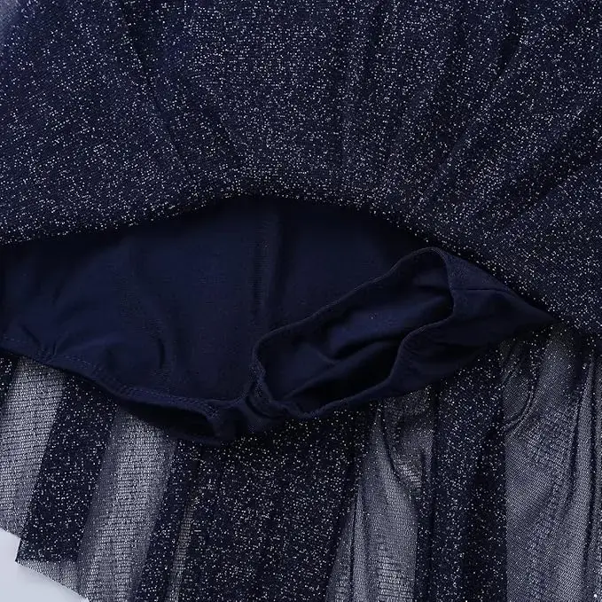 iEFiEL Girls Dress Sparkle Navy Blue (US 12, UK 11-12Y, EU 146-152cm)
