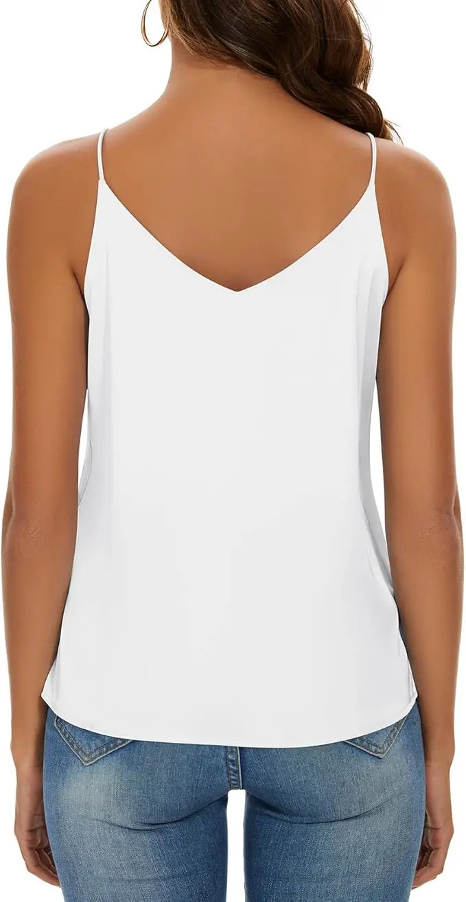 - This comfy basic silky cami top tank with a V-neck is a lightweight, breathable top for any activities, give a slight relaxed sexy style fit.